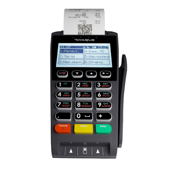 Унифицированное ПО. Цветной дисплей, считывающее устройство для контактных и бесконтактных банковских карт.