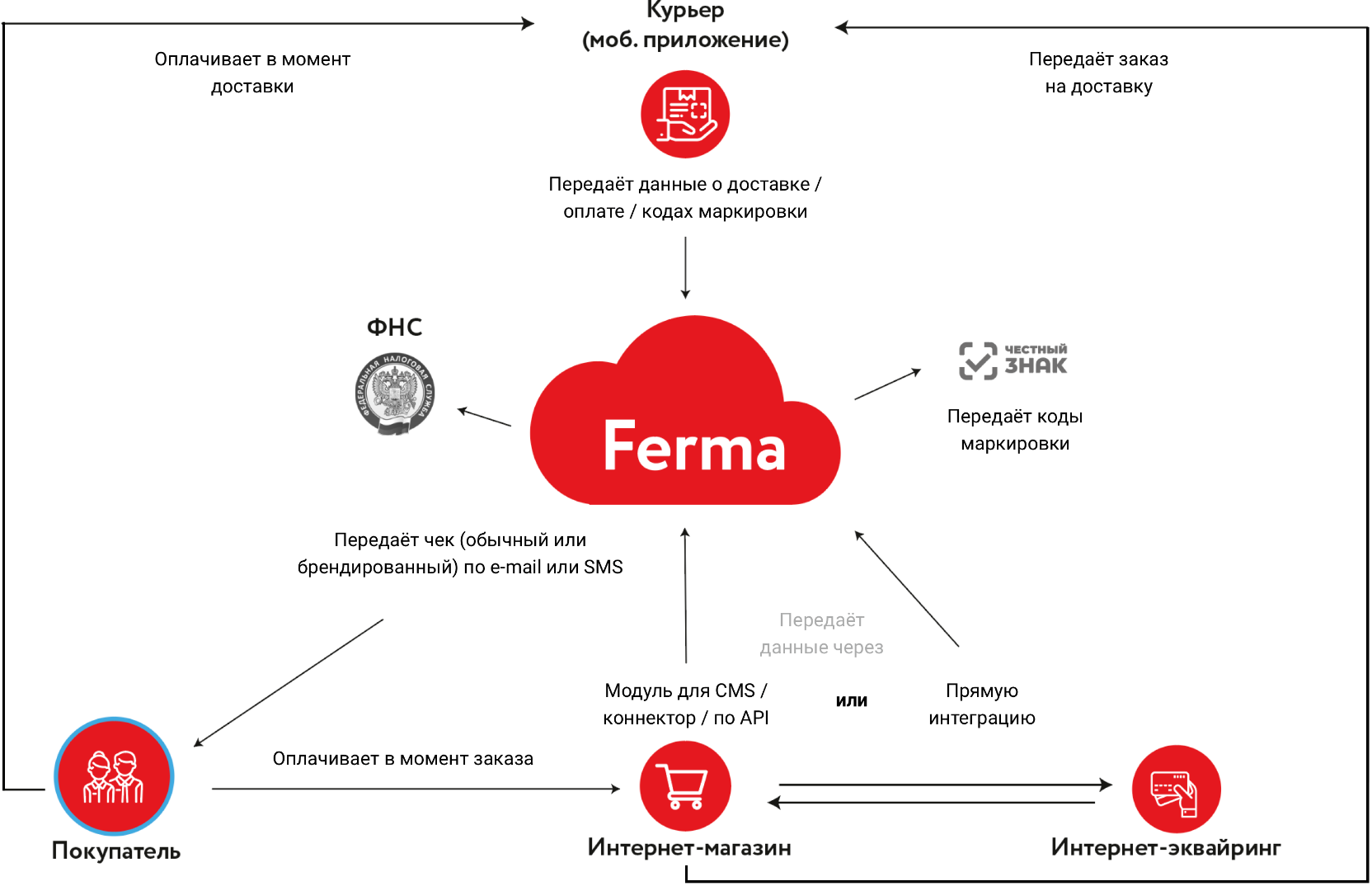 С помощью Ferma пробитие и отправка электронных чеков происходит в автоматическом режиме. Вся работа с кассой, чеками и закрывающими документами в едином личном кабинете.