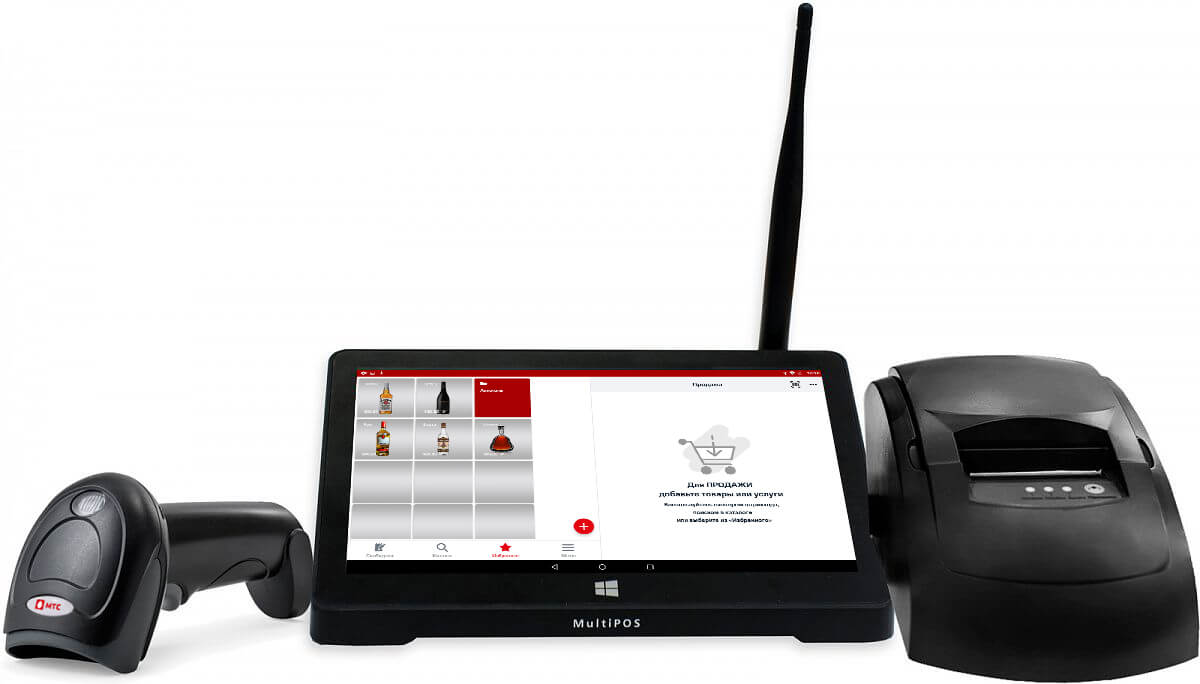 Стационарное решение с расширенным функционалом и возможностью работы с ЕГАИС. Обеспечивает высокую скорость обслуживания покупателей, подходит для розничных торговых точек, а также для сферы услуг, в том числе, общепита. В составе кассы: планшет с ОС Windows, фискальный регистратор, сканер МТС SB 2108.