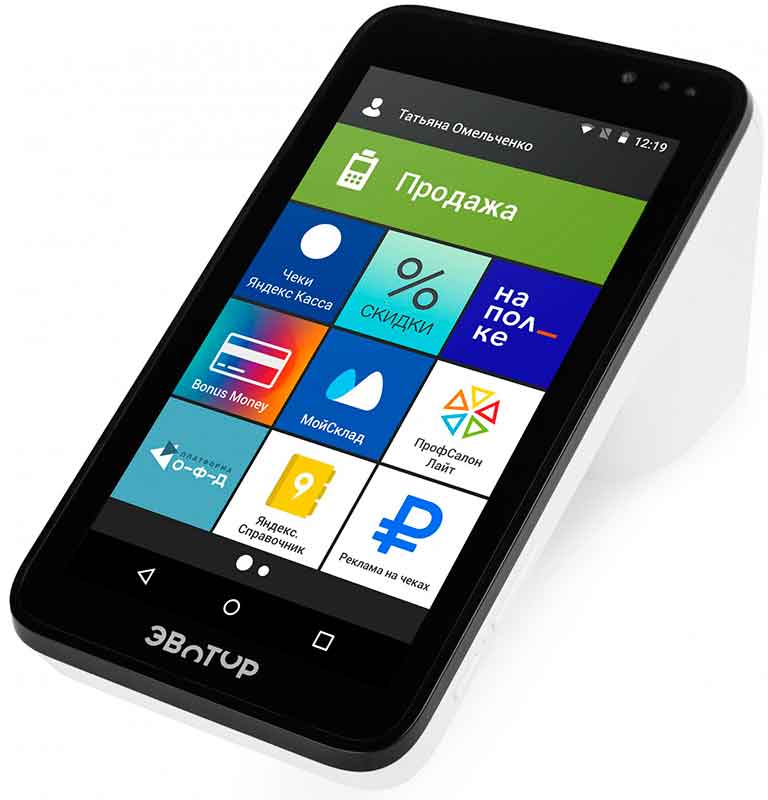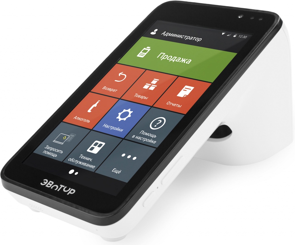 Устройство используется как кассовый терминал с печатью чеков, личный кабинет продавца или администратора.