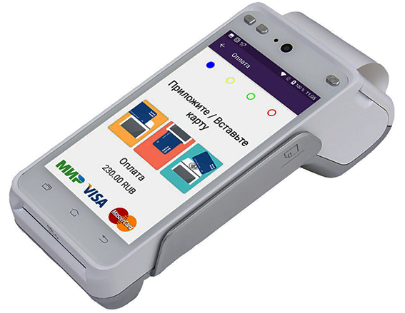 ККТ со встроенным банковским терминалом для приёма всех видов платежей, принтером и 2-мя сканерами для считывания QR- и штрих-кодов.